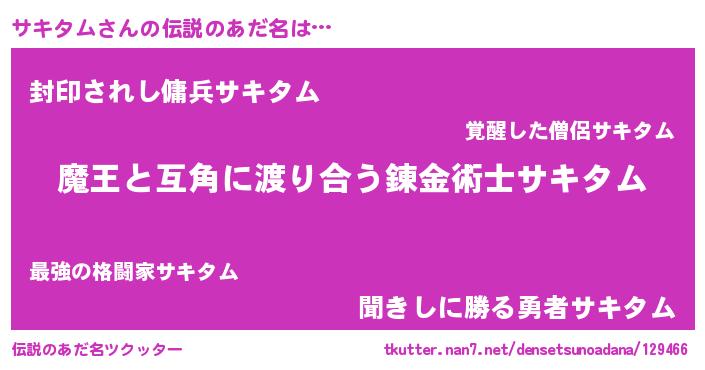 | ヒーロー風カッコイイあだ名 | 『愛の使者サキタム』『究極戦士サキタム』 |