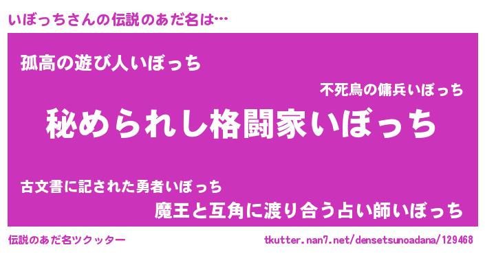 | 男性向けラノベタイトル風あだ名 | 『魔弾の王といぼっち』 |