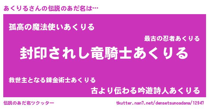 | 男性向けラノベタイトル風あだ名 | 『この素晴らしい世界にあくりるを!』 |