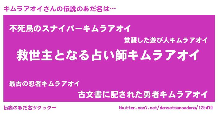 | ヒーロー風カッコイイあだ名 | 『究極戦士キムラアオイ』『仮面キムダー』 |