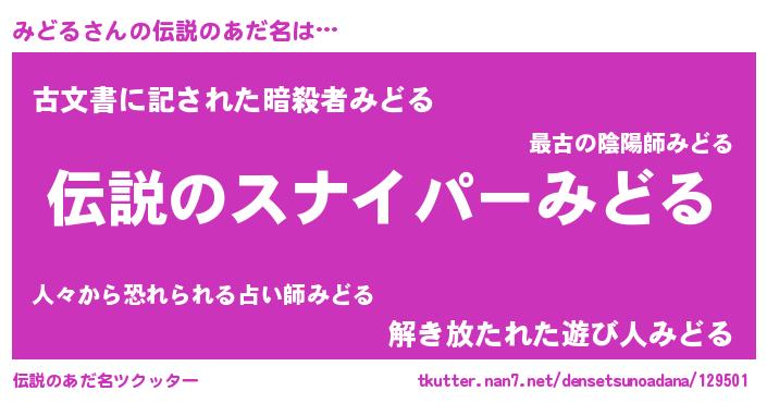 | 胡散臭い通販商品みたいなあだ名 | 『必ず成功する霊験あらたかなお札…その名も「みどる」』 |