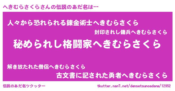 | ファンタジー風あだ名 | 『エターナルヘキムラサクラー』 |