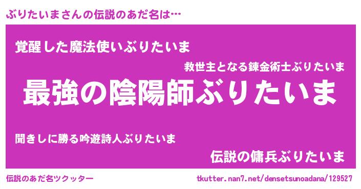 | ヒーロー風カッコイイあだ名 | 『究極戦士ブリタイマ』『黄金騎士ブリ』 |