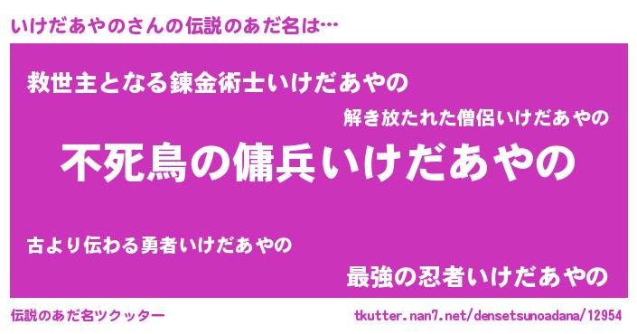 | 胡散臭い通販商品みたいなあだ名 | 『モテモテ間違いなし水晶球…その名も「いけだあやの」』 |