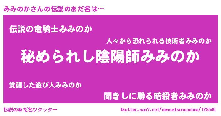 | ヒーロー風カッコイイあだ名 | 『ウルトラみみのかマン』『ネオミミノカ』 |