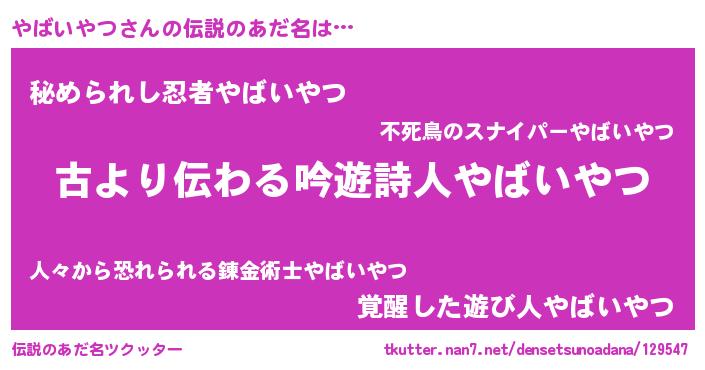 | ヒーロー風カッコイイあだ名 | 『サイバー戦士ヤバイヤツ』 |