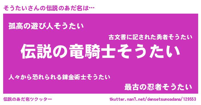 | ポケモン風あだ名 | 『ソウチュウ』『ソウゴンZ』 |