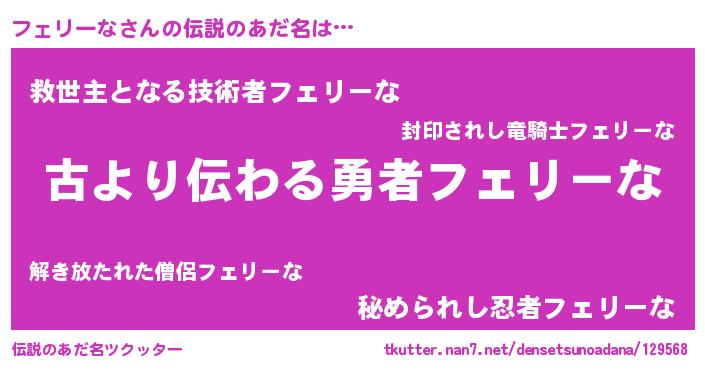 | 意味不明あだ名 | 『永久保存フェリーな』『自称フェリーな』 |