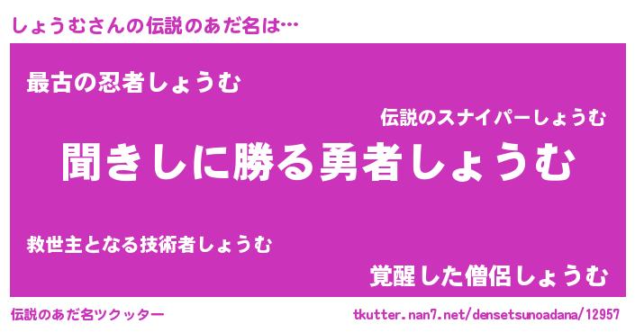 | 意味不明あだ名 | 『自称しょうむ』『永久保存しょうむ』 |