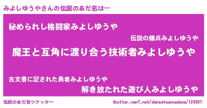 | 肩書あだ名 | 『みよしゆうや閣下』『みよしゆうや中佐』 |