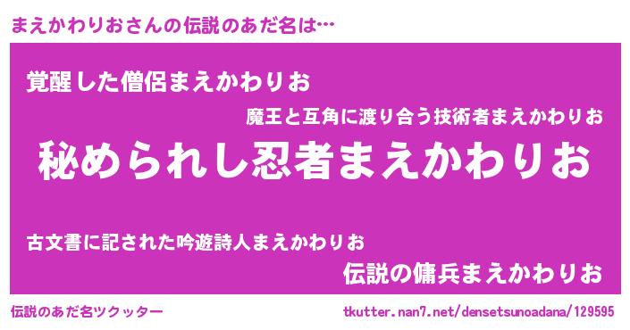 | 意味不明あだ名 | 『自称まえかわりお』 |