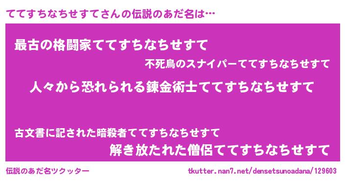 | 意味不明あだ名 | 『自称ててすちなちせすて』 |