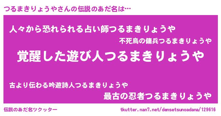| 意味不明あだ名 | 『とにかく怪しいつるまきりょうや』 |