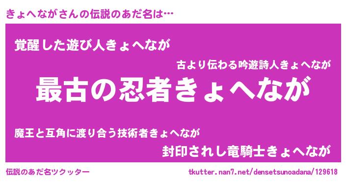 | 欧米人風あだ名 | 『きょへながクリステル』 |