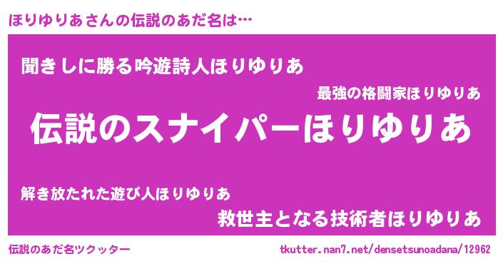 | 意味不明あだ名 | 『ペロリンほりゆりあ』『自称ほりゆりあ』 |