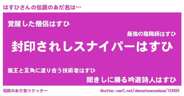| 胡散臭い通販商品みたいなあだ名 | 『億万長者になれる霊験あらたかなお札…その名も「はすひ」』 |