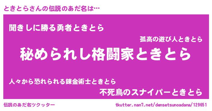 | ヒーロー風カッコイイあだ名 | 『ウルトラときとらマン』『仮面トキダー』 |