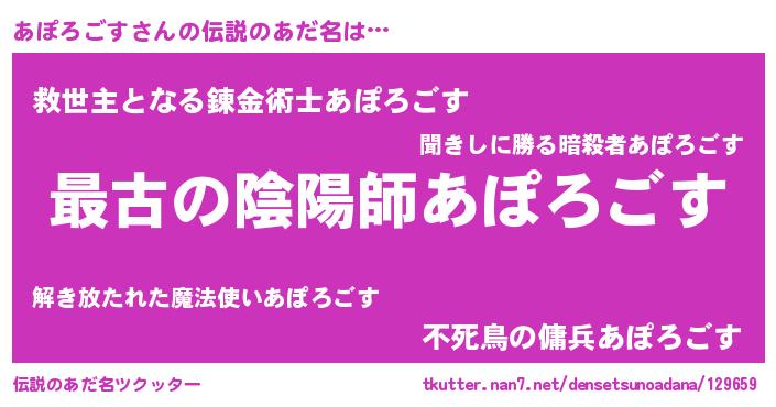 | ヒーロー風カッコイイあだ名 | 『仮面アポダー』『天空の使者あぽろごす』 |