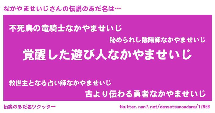 | 男性向けラノベタイトル風あだ名 | 『なかやませいじの嫁は女の子じゃないと思った?』 |