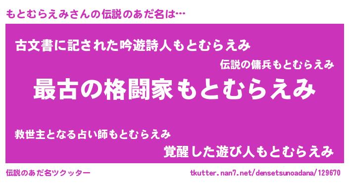 | ファンタジー風あだ名 | 『エターナルモトムラエミー』 |