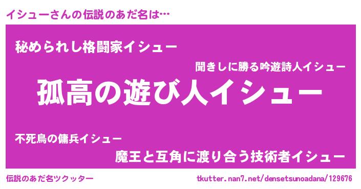 | 意味不明あだ名 | 『自称イシュー』『イシューフォーエバー』 |