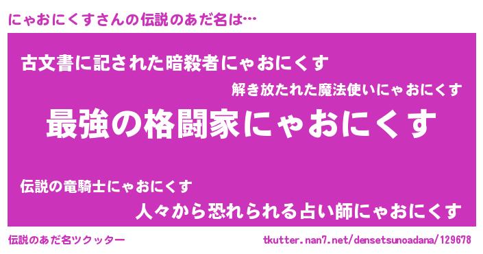 | 意味不明あだ名 | 『住所不定無職にゃおにくす(13歳)』 |