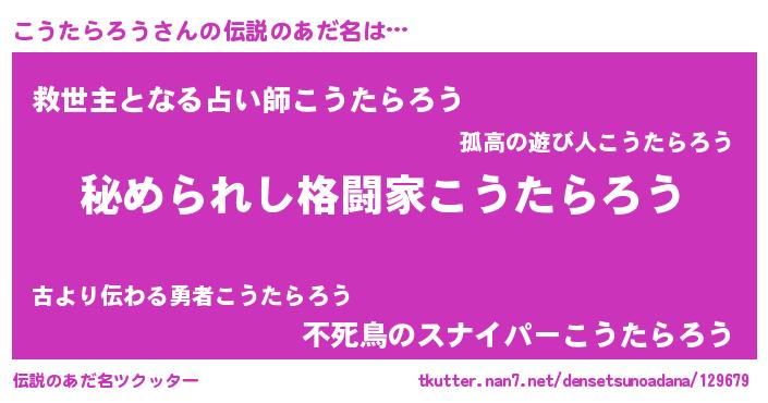 | ファンタジー風あだ名 | 『エターナルコウタラロウー』 |
