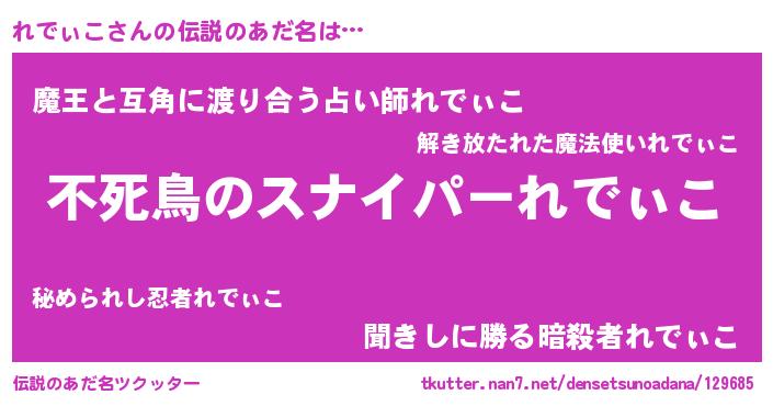 | 意味不明あだ名 | 『ペロリンれでぃこ』『自称れでぃこ』 |