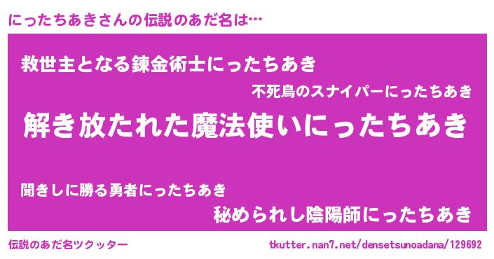 | 意味不明あだ名 | 『自称にったちあき』 |