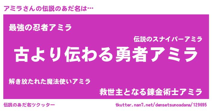| ヘコむあだ名 | 『アミラ(震え声)』『酢こんぶ』 |