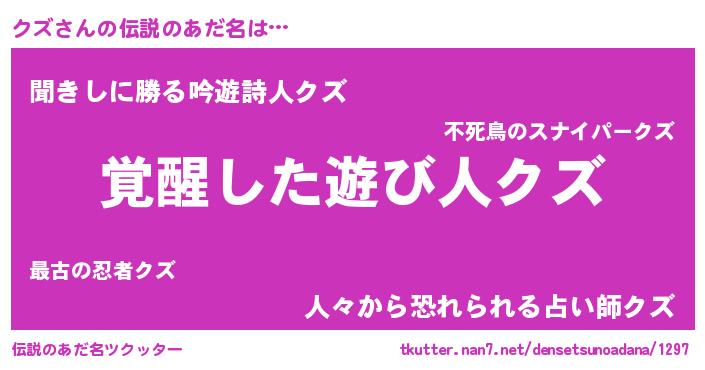 | ヒーロー風カッコイイあだ名 | 『仮面クズダー』『幻影騎士クズ』 |