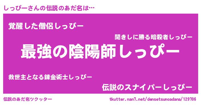 | 意味不明あだ名 | 『しっぴーフォーエバー』『自称しっぴー』 |