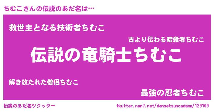 | 男性向けラノベタイトル風あだ名 | 『緋弾のチムコ』『ちむこの憂鬱』 |
