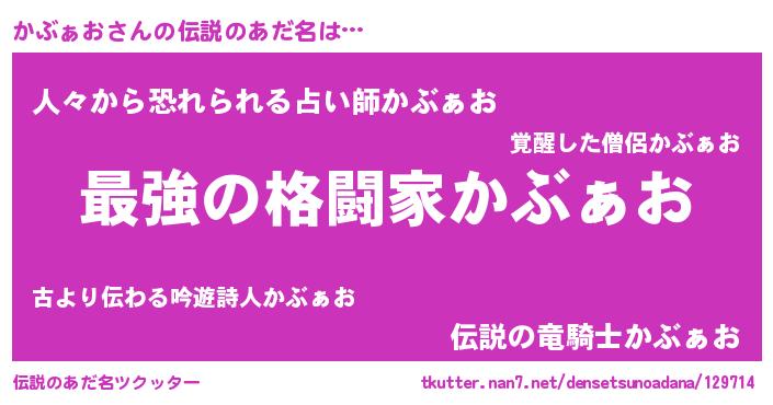 | 女子向けラノベタイトル風あだ名 | 『かぶぁおの婚約者』『かぶぁお恋絵巻』 |