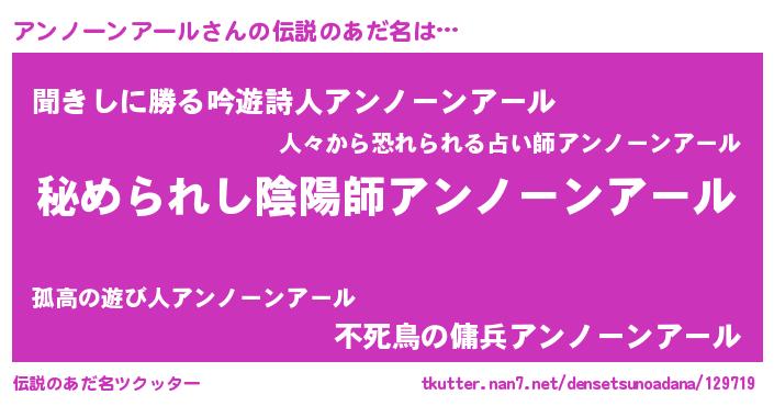 | ヒーロー風カッコイイあだ名 | 『ウルトラアンノーンアールマン』 |