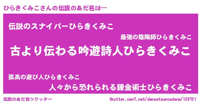 | 意味不明あだ名 | 『永久保存ひらきくみこ』 |