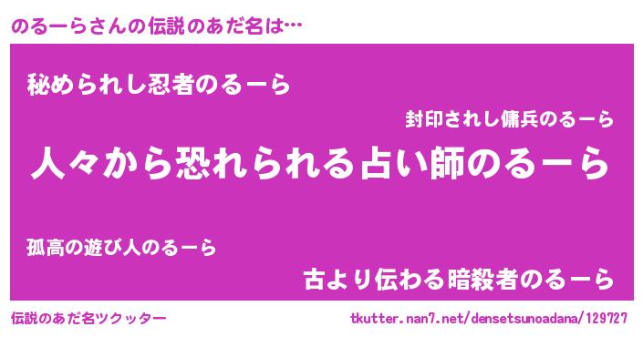 | 男性向けラノベタイトル風あだ名 | 『ノルーラスレイヤー』 |