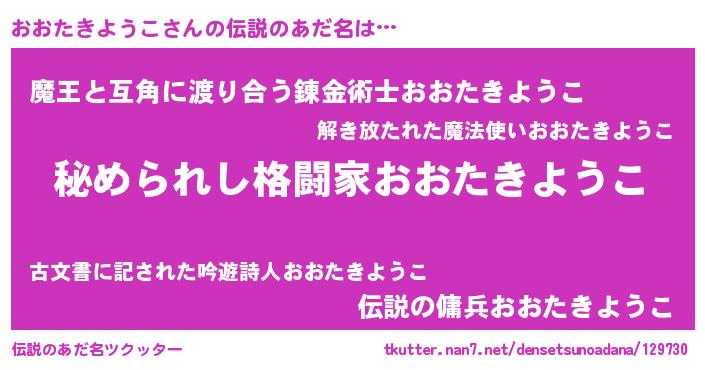 | ファンタジー風あだ名 | 『エターナルオオタキヨウコー』 |