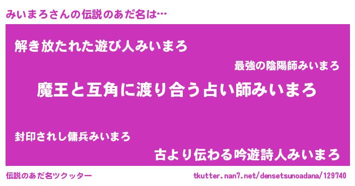 | 男性向けラノベタイトル風あだ名 | 『転生したらみいまろだった件』 |