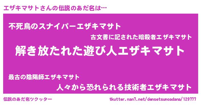 | ポケモン風あだ名 | 『エザセウス』『ヒエザキマサト』 |