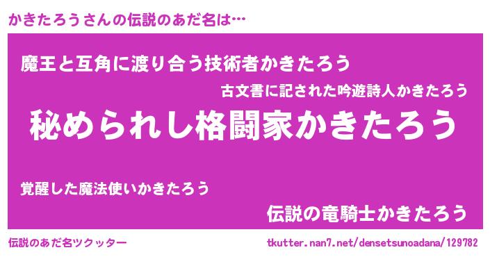 | 男性向けラノベタイトル風あだ名 | 『やはりかきたろうの青春ラブコメはまちがっている 』 |