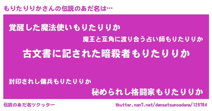 | 意味不明あだ名 | 『永久保存もりたりりか』 |