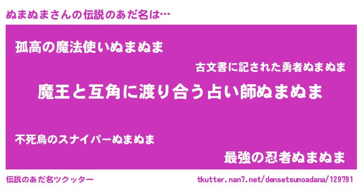 | 欧米人風あだ名 | 『ダニエルぬまぬま』『ウサインぬまぬま』 |