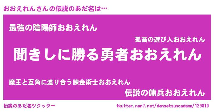 | 男性向けラノベタイトル風あだ名 | 『おおえれんという概念が存在しない退屈な世界 』 |