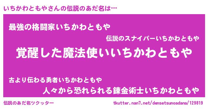| 男性向けラノベタイトル風あだ名 | 『いちかわともやの嫁は女の子じゃないと思った?』 |