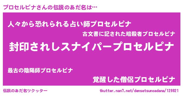 | 意味不明あだ名 | 『住所不定無職プロセルピナ(89歳)』 |