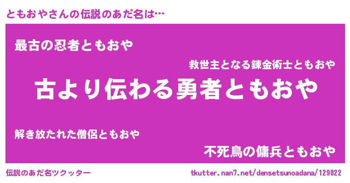 | ヒーロー風カッコイイあだ名 | 『ネオトモオヤ』『サイバー戦士トモオヤ』 |