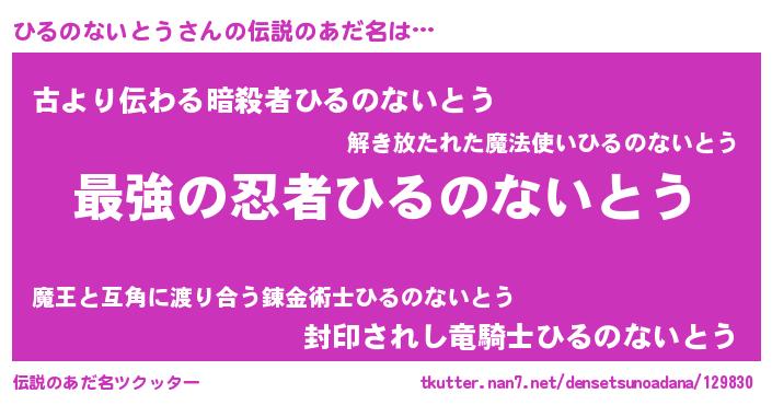 | 意味不明あだ名 | 『自称ひるのないとう』 |