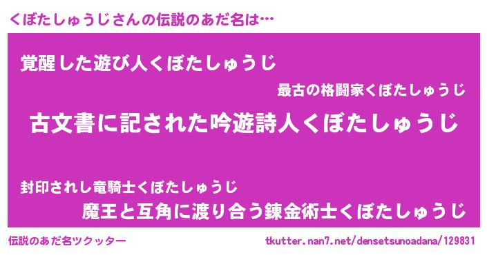 ヘコむあだ名 | 『くぼたしゅうじ(小並感)』『くぼぷりん』 |