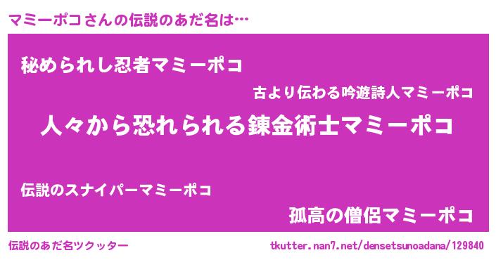 | ヒーロー風カッコイイあだ名 | 『正義の使者マミーポコ』『幻影騎士マミ』 |